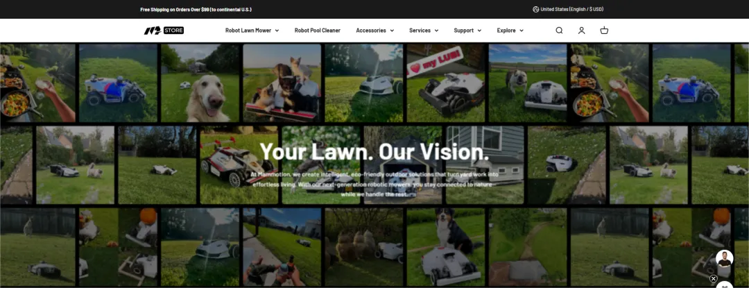 做法:MAMMOTION没有盲目跟风,而是组建专业团队直奔欧美澳英实地调研,把草坪按面积、坡度、草种硬度分成多个类别,针对性设计产品。比如针对大型复杂庭院做旗舰款,针对小户型做迷你款,甚至延伸到泳池清洁场景,形成“一款场景对应一款方案”的矩阵。