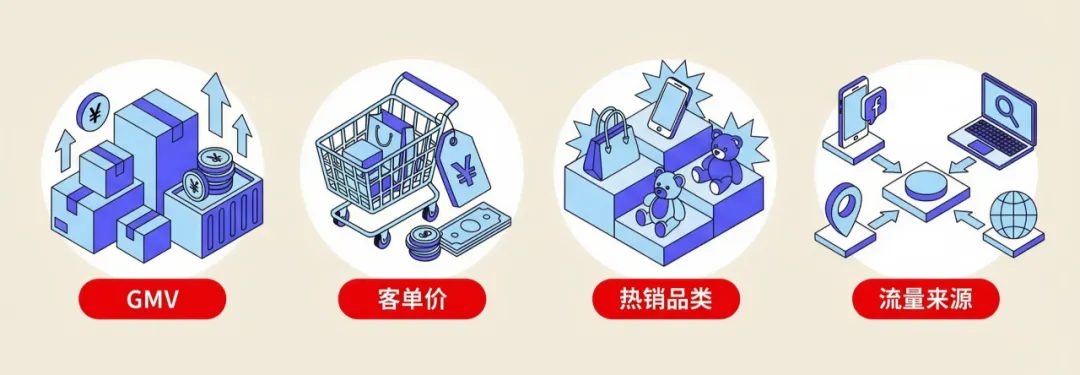 ⚡ 一键生成包含 GMV、客单价、热销品类、流量来源的可视化店铺报告。