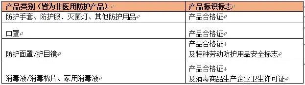 家庭防护产品类目下,产品描述中需展示产品质量相关的产品标识的类目如下: