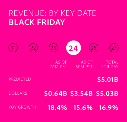 仍然是来自Adobe 的数据,黑五当天,美国消费者通过网购产生的销售额达到了50.3 亿美元,较2016 年同期增长了16.9%: