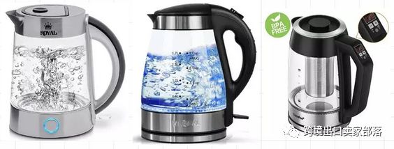 电热水壶:电热水壶于今年呈现销售爆发状态,年增长已超越去年同期200%,与空气炸锅、食物调理机并列为今年厨房用具三大新星。从热卖品分析可以看出,具温度控制、LED颜色识别、及无线设计等功能的产品较受欢迎。使品类中国卖家占比较低,整体具有庞大增长空间,卖家可多关注相关选品。