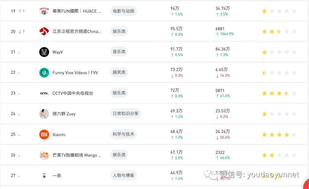 关于YouTube中国区网红,放一点数据,大家观摩一下: