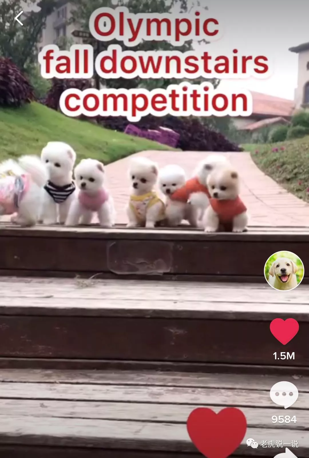 1.在视频开始添加了字幕“Olympic Fall DownStairs Competition”(奥林匹克摔楼梯大赛),加上主题再配上萌萌的十个小狗下楼梯,第一秒就抓住了观众的视线。(从萌视频,变成了萌+有趣 视频) 2.将视频剪辑到9s,数据显示7-9s是用户最容易接受的反复观看时长。