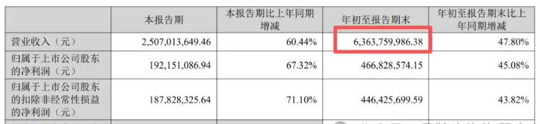 2025年前三季度,公司实现营业收入63.64亿元,同比增长47.80%;归母净利润达4.67亿元,同比增长45.08%;