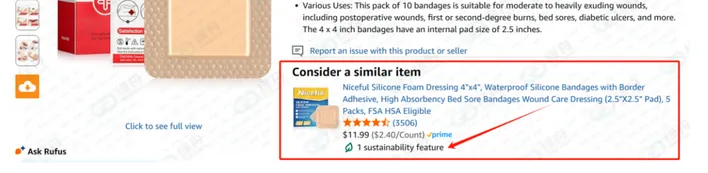 显然不可能把自己的产品用new-model形式打到竞品页面,那是不是就无解呢?答案是否定的,我们可以利用亚马逊rufus算法智能推送,如果你想要高概率被推送,那么做“环保认证-绿标”绝对是你的最佳选择。