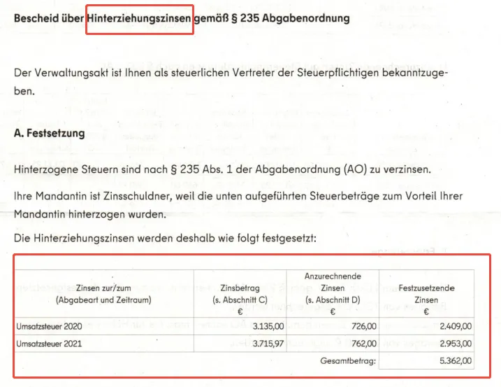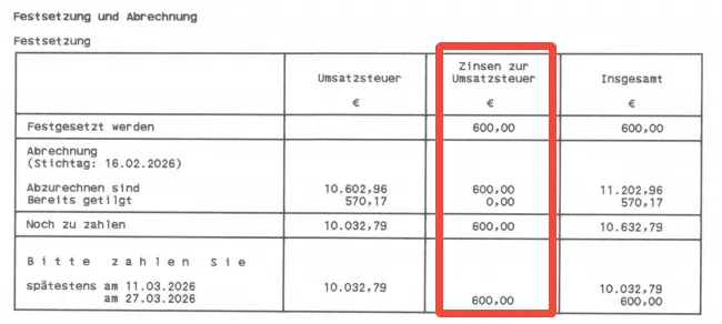 ➤ 修正申报提交后,税金需在1个月内缴纳,逾期将产生滞纳金(Säumniszuschlag)!