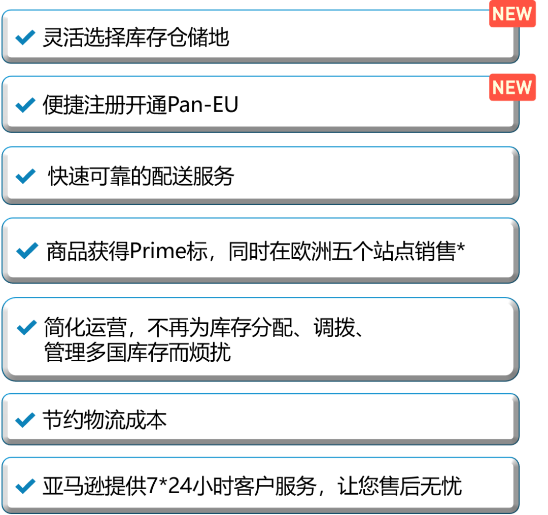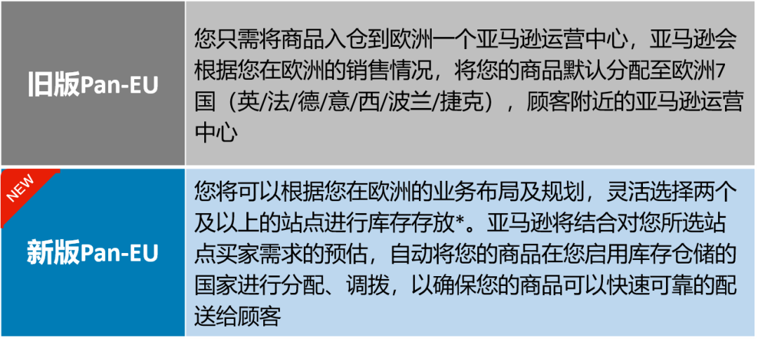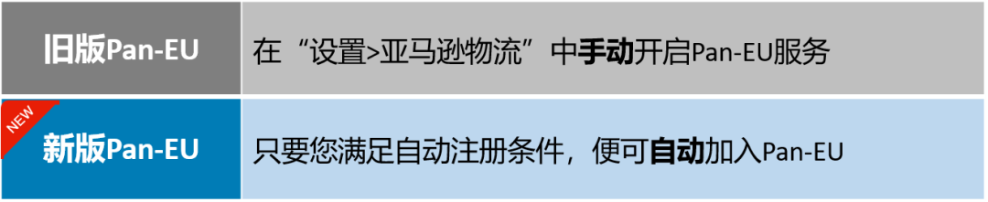 如果您满足Pan-EU自动注册的条件,您将自动加入Pan-EU。详见“新版本Pan-EU注册方法”部分。使用新版Pan-EU能够帮助您进一步优化物流成本。