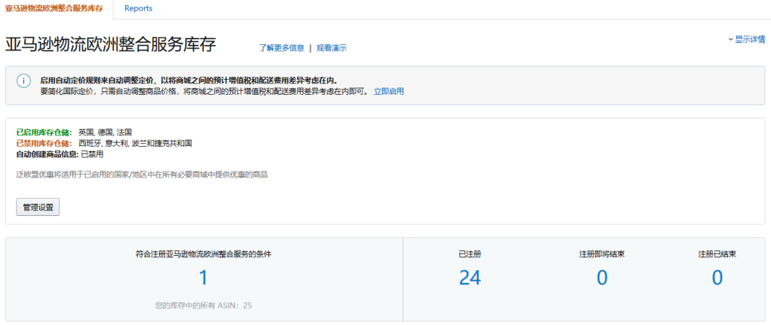 ▼库存仓储要求:在两个及以上欧洲站点启用库存仓储(卖家已经注册增值税号的站点会自动启用库存仓储)