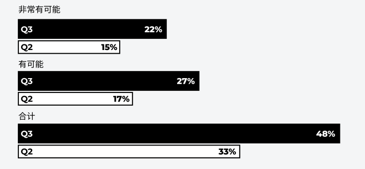 首先,消费者将继续削减开支,相比上个季度,73%的消费者表示,他们的开支将会在第三季度有所减少或持平,此比例在上个季度为76%,虽然略有回升但并不明显,可见消费者仍然对消费保持谨慎态度。