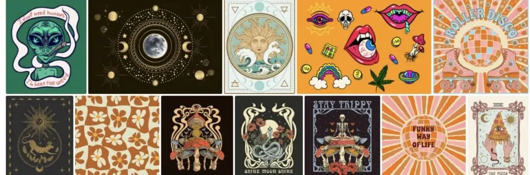 Kateryna Shamanska是一位来自乌克兰的多媒体设计师和插画师,其作品风格以超现实、迷幻及复古美学著称。作为本案核心版权持有人,深耕原创设计领域15年,其创作的2D艺术作品兼具艺术价值与商业价值,Kateryna Shamanska的创作灵感源自70年代迷幻摇滚的活力韵律、复古美学、新艺术运动的优雅格调以及嬉皮士精神,擅长创作包含魔法元素、占星符号、大象及迷幻图案的矢量插图。其作品被广泛用于家居装饰、礼品包装等领域。