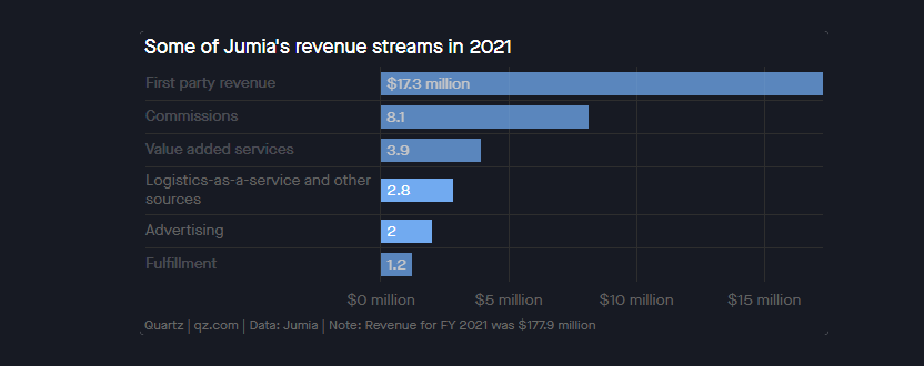 报道称,在销售和广告方面的投资,促进了Jumia收入的增长。Jumia在公布2021年财务业绩时,首次公布了广告部门的收入,营收20万美元。