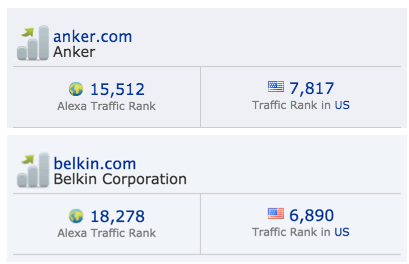与竞争对手Belkin相比,虽然主打的北美市场排名略低,但全球排名上Anker已经领先。