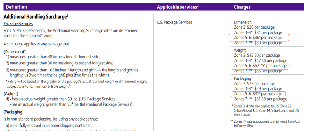 超大尺寸附加费商业地址全段Zone将全面涨价,住宅地址Zone5-6价格上涨。