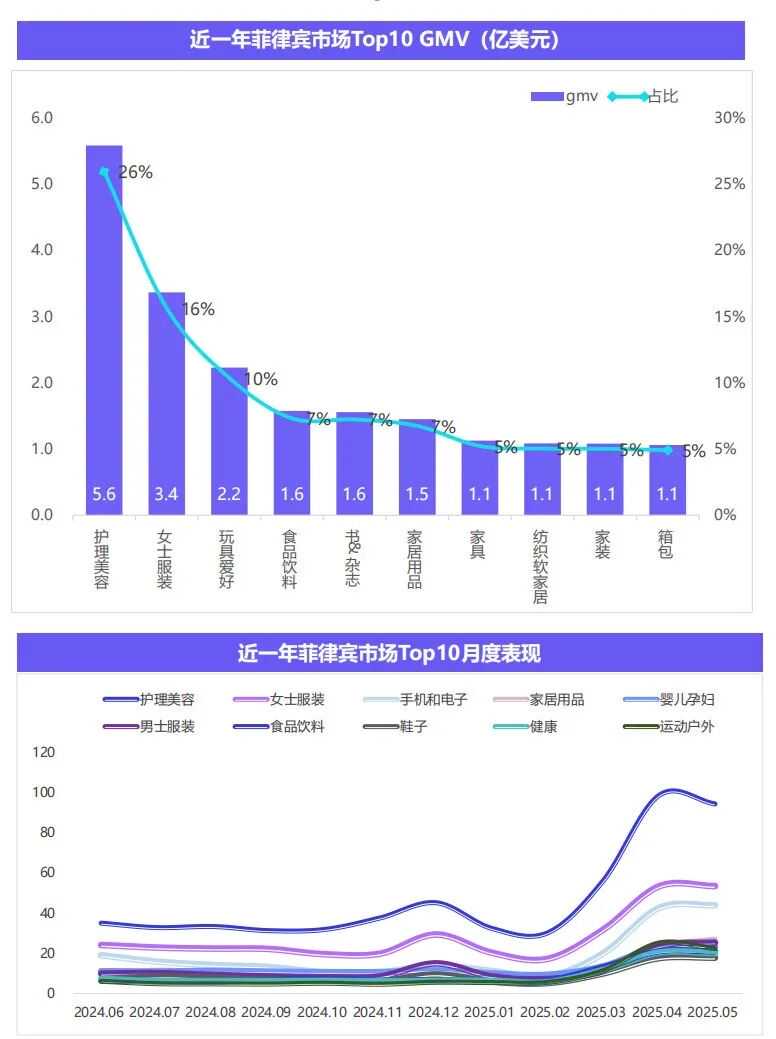 从分月趋势看,泰国站点在上半年出现双峰走势,单月 GMV 峰值接近 1.6亿美元,引领东南亚整体走势;菲律宾市场在节日与爆款驱动下,单月峰值突破 8200万美元,但波动性较大;越南则保持稳步攀升态势,近期单月 GMV 接近 8000万美元,增速突出。