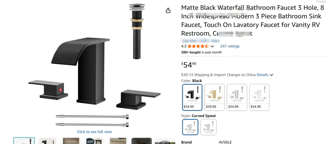 原告Heshan Jiahojia Sanitary Ware Industry, CO., LTD为国人卖家公司,主营淋浴系统、淋浴柱、浴缸水龙头等卫浴产品。