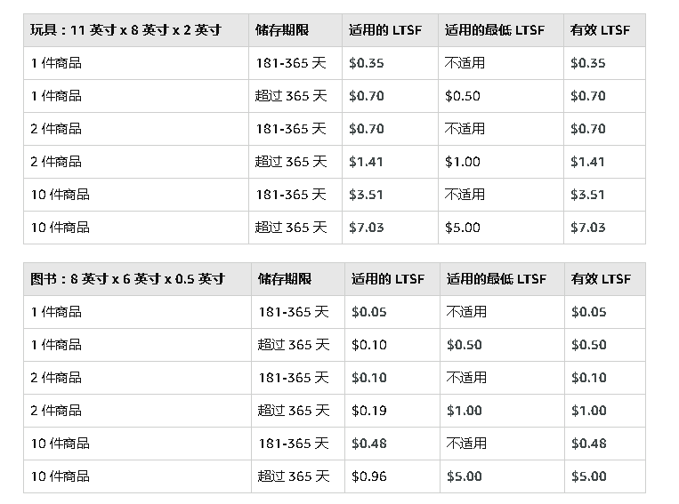 如果您的商品参加了亚马逊物流轻小商品计划,请参阅计划的帮助页面,了解适用的长期仓储费。