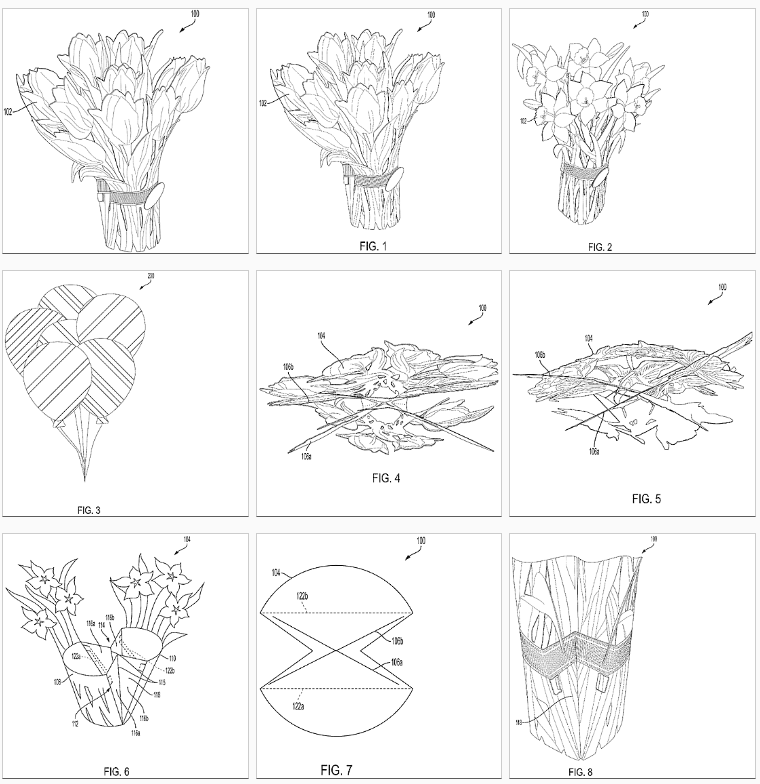 上图是FreshCut Paper公司的弹出式花束,分别在美国、欧洲、澳大利亚、加拿大注册了专利,四个专利号所注册的产品一致。