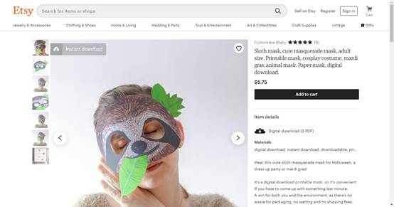 树懒在2019年是大受欢迎的动物,于此同事过去的三个月中搜索面具的Etsy用户同比增加了23%,这就是术櫴面具成为热门产品之一的理由。