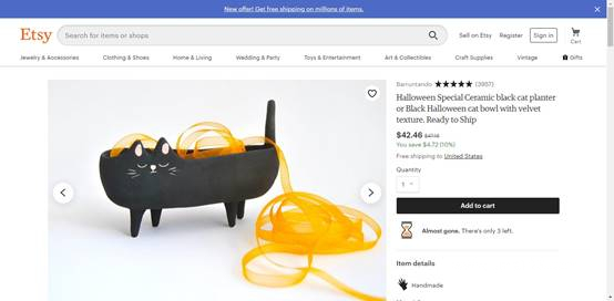 Etsy万圣节趋势报告显示,过去三个月搜索小狗服装的用户数量比2018年同期增加了8%,因此这类带有节日元素的宠物用品也十分具有潜力。