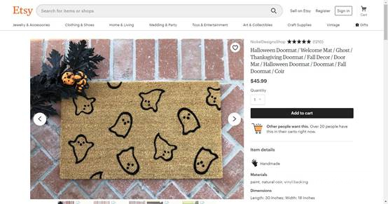根据Etsy的万圣节2019年趋势报告,Etsy用户在过去三个月中搜索的万圣节门装饰比去年同期增加了12%,其中万圣节地垫就是其中之一。