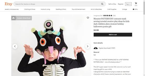 2019年是登月50周年,Etsy报告称,与去年同期相比,过去三个月外星人服装的搜索量增加了37%,例如这个DIY的衣服纸样就十分受欢迎。