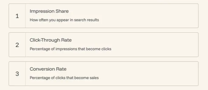 优先盯两个:点击率(CTR)和转化率(CR)。CTR决定“有多少人看到你的Listing会点进来”,CR决定“点进来的人有多少会下单”,两者缺一不可。