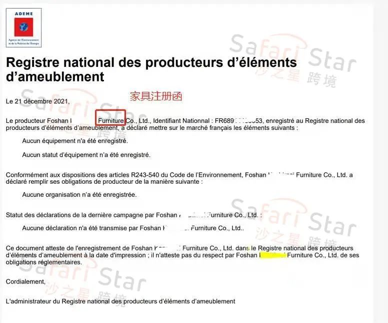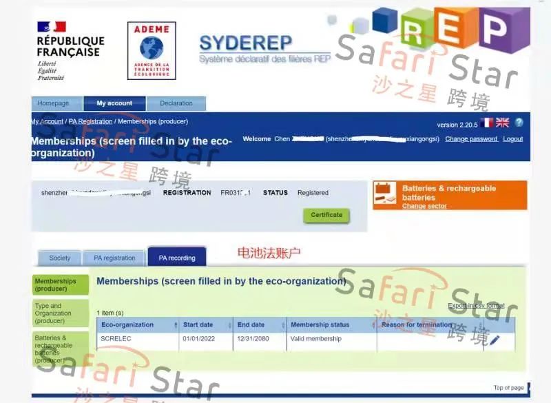 我们收到一些法国家具和电池法的在ADEME,Sydeper系统的EPR注册证书!EPR号码之前预计的2022年才下号,现在实际速度快多了!