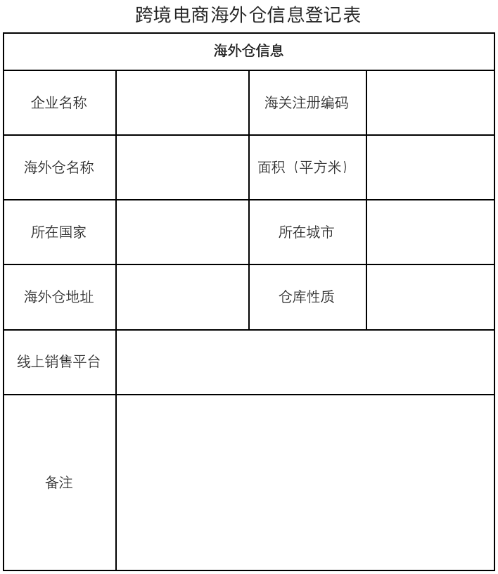 《跨境电商出口海外仓企业备案登记表》《跨境电商海外仓信息登记表》(一仓一表)