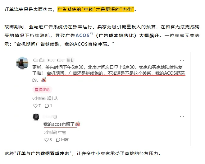 截至发文,亚马逊已确认故障,并表示正在修复。但有一件事官方没说,卖家心里都清楚:昨晚损失的订单、多花的广告费,大概率回不来了。