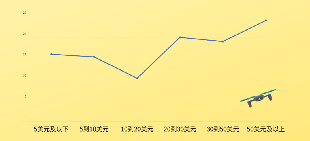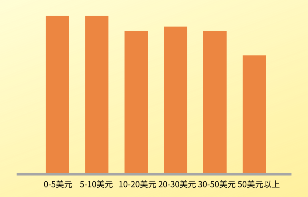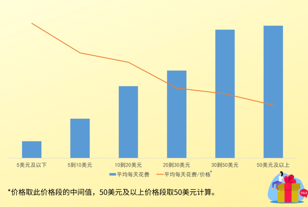 产品价格越高,PB活动的每日平均花费就越高(这个大家好像都知道……),但是!产品价格越高,产品平均每天的PB花费占产品价格的比例就越低。 在抽样的PB活动中,价格低于5美元的产品,平均每天的PB花费只有不到1美元,该花费占这一价格段的产品平均价格的35%左右,相当于多卖出1件产品就能支持该产品开展3天的PB活动;而价格高于50美元的产品,平均每天的PB花费约为7美元,更是只占产品平均价格的10%左右。