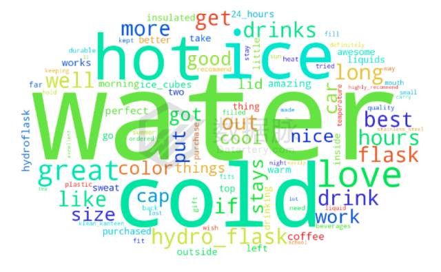 在所有的4182条好评(5分评论)中,有2121条评论提到 “cold”,965条评论提到“ice”,其中310条评论强调该水壶在高温车内保冷效果好;227条提及“color”,表示对水壶颜色满意;约150条评论表示可以长时间保持咖啡热度;318条评论表达了对“Hydro Flask”品牌的喜爱。