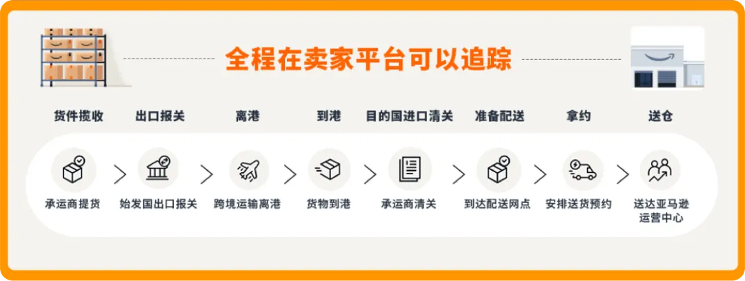 货物运输的每个节点(发货、清关、送仓等)都会自动同步到亚马逊后台,打开手机就能追踪。方便你及时补货,不怕积压也不怕断货。