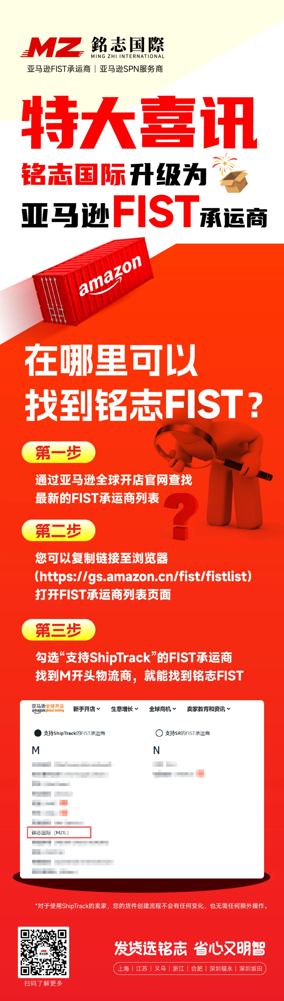 FIST全称是“FBA入仓货件追踪智控系统”,针对头程物流多环节痛点,集成多家第三方线下承运商(铭志国际物流就是其中之一),实现物流数据同步,致力于通过透明化、自动化、智能化的产品系统,全程追踪跨境货件,为卖家减少运营成本,简化供应链管理,打造更加高效的头程物流体验。