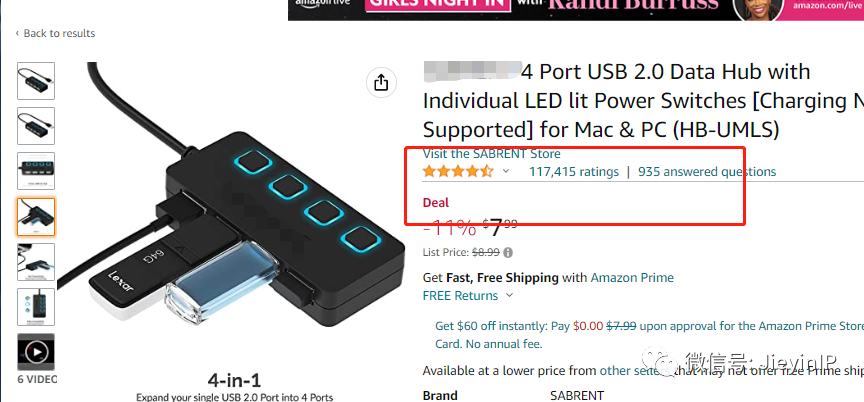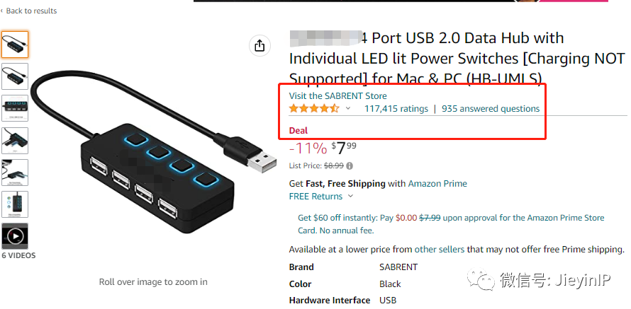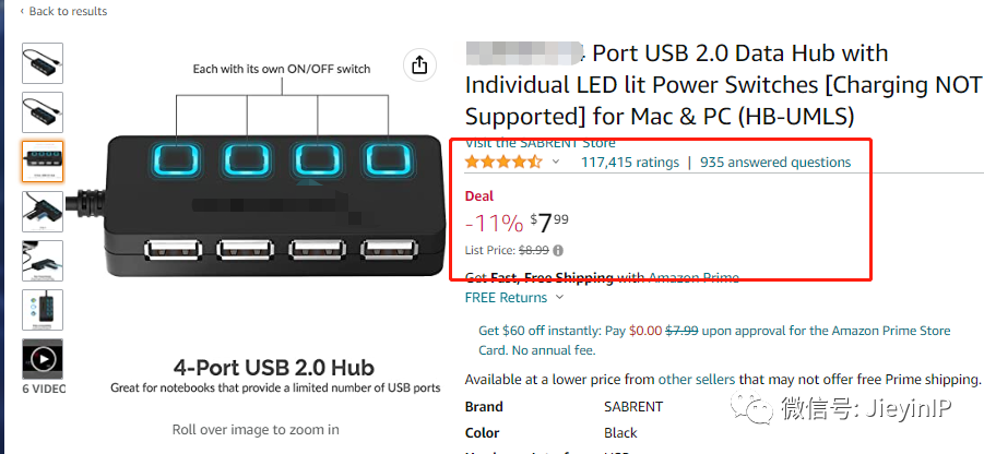 今天分享的这款USB集线器,它是亚马逊美国站的#1 Best Seller in Computer Networking Hubs,售价7.99美金,留评高达117415.