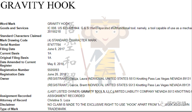 品牌名Gravity Hook注册大类为08,主要是器械类产品。目前没有查询到该产品的相关专利: