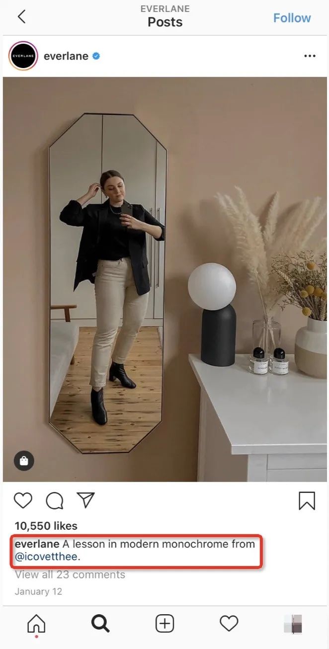 在 Instagram 为品牌收集UGC的最好方法之一是创建品牌标签,使用品牌主题标签,允许消费者在帖子中包含主题标签,品牌主可以轻松地搜索和查找想要分享的 UGC。品牌标签帮助你收集内容和创建内容库,为品牌主提供源源不断且新颖的内容。