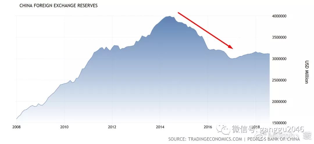 而资本外流最直观的表现就是外汇储备的下降,如图: