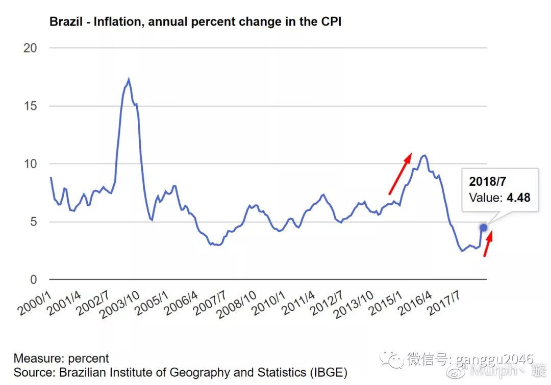在2014年曾陡升超过10%,今年也再次开始攀升。而且我们看看巴西这些年所经历的通胀就可以想象这个国家的经济被管理的多么糟糕。