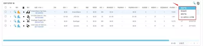 4)将搜索结果前50 分析器中所获得的的关注对象,添加到监测产品列表1。