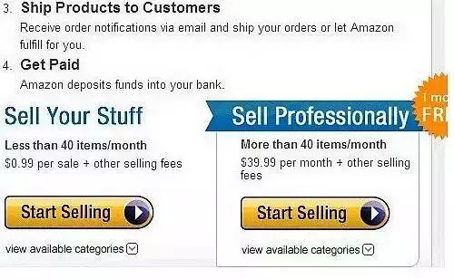 专业卖家则需要每个月交月租$39.99+销售一件产品的佣金。