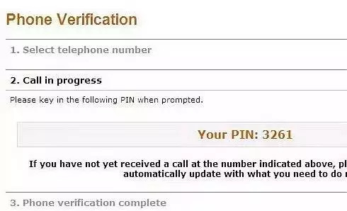 输入电话号码。点击“call me now” 会有美国致电验证PIN。