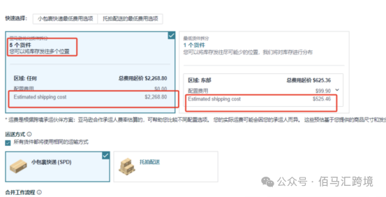 以前咱发货5个仓库以上,是不收配置费的。这次发货,虽然配置费显示 0,但货件里莫名其妙多了个 2268刀的预计运费。