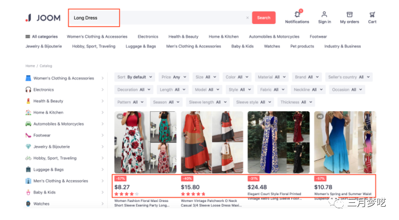 Joom客户端最大的特色之一就是个性化界面。个性化界面的工作原理是分析用户的行为和偏好,在客户端内只显示用户感兴趣的产品,因此每个用户在Best页面和关键词搜索页面中看到的产品是不一样的。