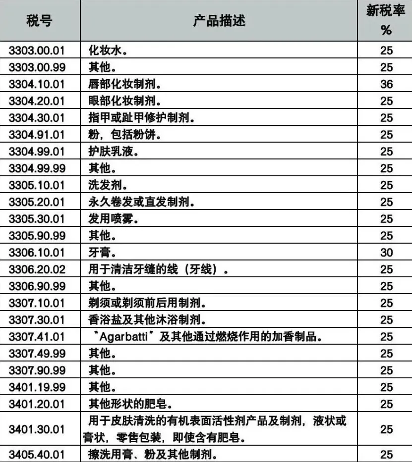 关税分布:10%-50%(委员会修改后多数产品税率集中在10%-35%);其中316个分类此前免税,现首次征税;341个35%;302个10%;其余渐变。