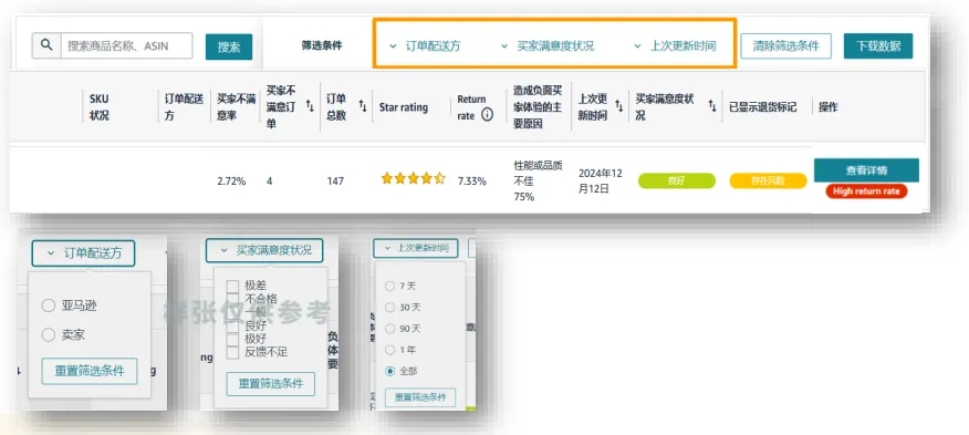 单个商品买家不满意率等情况,提前预警潜在退货风险