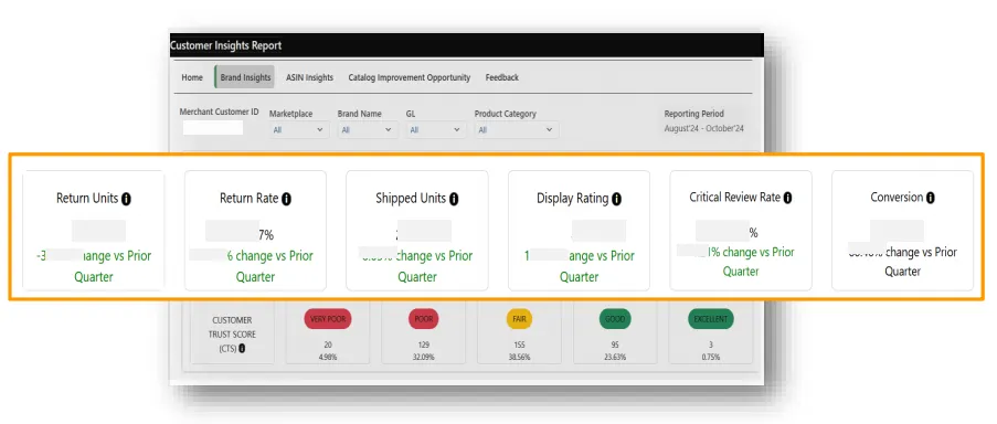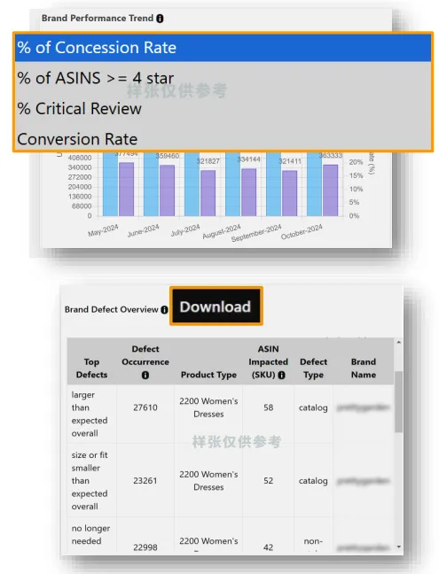 品牌维度:退货率、关键评论率、客户信任度综合评分