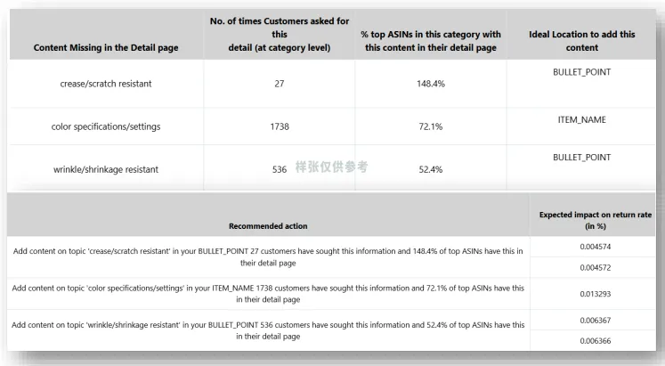 商品详情/目录优化建议:明确指出详情页缺失什么信息、补充后对退货率的预期改善幅度