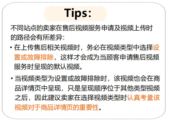 上传售后视频,当顾客遭遇商品售后问题时,可通过卖家已上传的故障/问题排除视频,自主解决相应的问题,如安装、使用等。