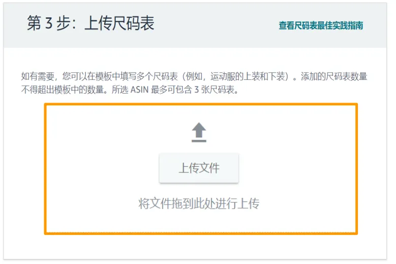 注意:如果希望选择这一上传方式,需确保所有 ASIN均未曾使用过该尺码表模板上传;否则,请使用"选择ASIN”的方式完成上传。