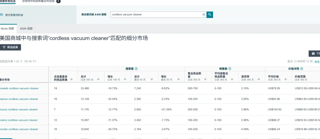 客单价波动:对比去年同期客单价与近1个月环比数据,明确类目价格趋势(上涨 / 下降 / 稳定)。若客单价持续下降,可能是市场竞争加剧、低价新品涌入或消费者需求转向性价比产品,需及时调整自身定价策略;若客单价上涨,则可能是类目产品升级、高端需求提升,可考虑优化产品配置或布局高客单 SKU。 订单量与销售额趋势:重点关注订单量同比(如 2024 年 vs2023 年同期)、销售额环比(如本月 vs 上月)变化。例如文档中 “2026 年订单量同比 2024 年上涨一倍”,这种情况可能意味着类目需求扩容,但竞争导致价格下沉,需平衡 “走量” 与 “盈利”,可通过优化供应链降低成本,或强化产品差异化避免陷入价格战。 总销量与类目容量:监控类目 TOP100 产品的总销量变化,总销量整体走高说明类目整体销量提升,市场需求旺盛;反之则可能需求萎缩。同时结合类目总销售额数据,判断市场容量大小 —— 若销售额持续增长,说明市场仍有增量空间,可加大推广力度;若增长停滞,则需聚焦存量竞争,优化产品核心优势。 新品榜(New Release)动态:新品榜是洞察市场趋势与潜在竞争的关键。需定期记录新品榜头部 ASIN 的上架时间、定价、核心卖点、评分等信息,记录新品榜的核心目的有二:一是挖掘新品机会(如发现未被满足的细分需求),二是提前预警潜在竞品(如头部卖家推出的新品、具有创新设计的产品),为自身新品开发或现有产品升级提供参考。 关于以上指标中,平均客单价,售出件数,可以通过亚马逊后台商机探测器和选品指南针找到数据,当然如果觉得麻烦,不过度在意数据真实性,只是有数据帮忙判断趋势,节约实际的话,也可以使用第三方工具进行查询,以节约数据寻找时间